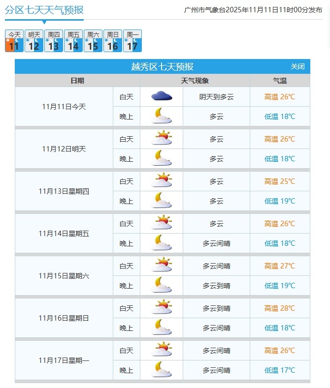 广州市区具体天气预报