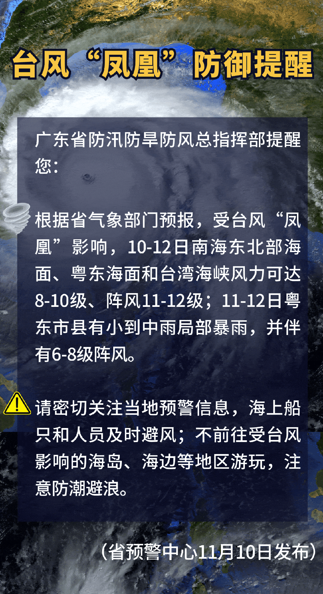 据广东省气象部门预报,受台风“凤凰”影响,11月10日-12日,南海东北部海面、粤东海面和台湾海峡风力可达8—10级、阵风11-12级;11日-12日,粤东市县有小到中雨局部暴雨,并伴有6-8级阵风;13日,粤东市县阵雨转多云。另外千里马配资,受冷空气和台风“凤凰”共同影响,11-12日南海北部、粤东海面有持续大风。
